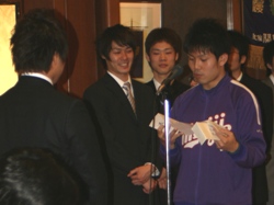 本学エースの水谷(政経2)が、岸川(スヴェンソン)とのダブルスで銅メダルを獲得した。97年大会の松下(平2文卒)・渋谷(平2営卒)組以来の快挙を達成。