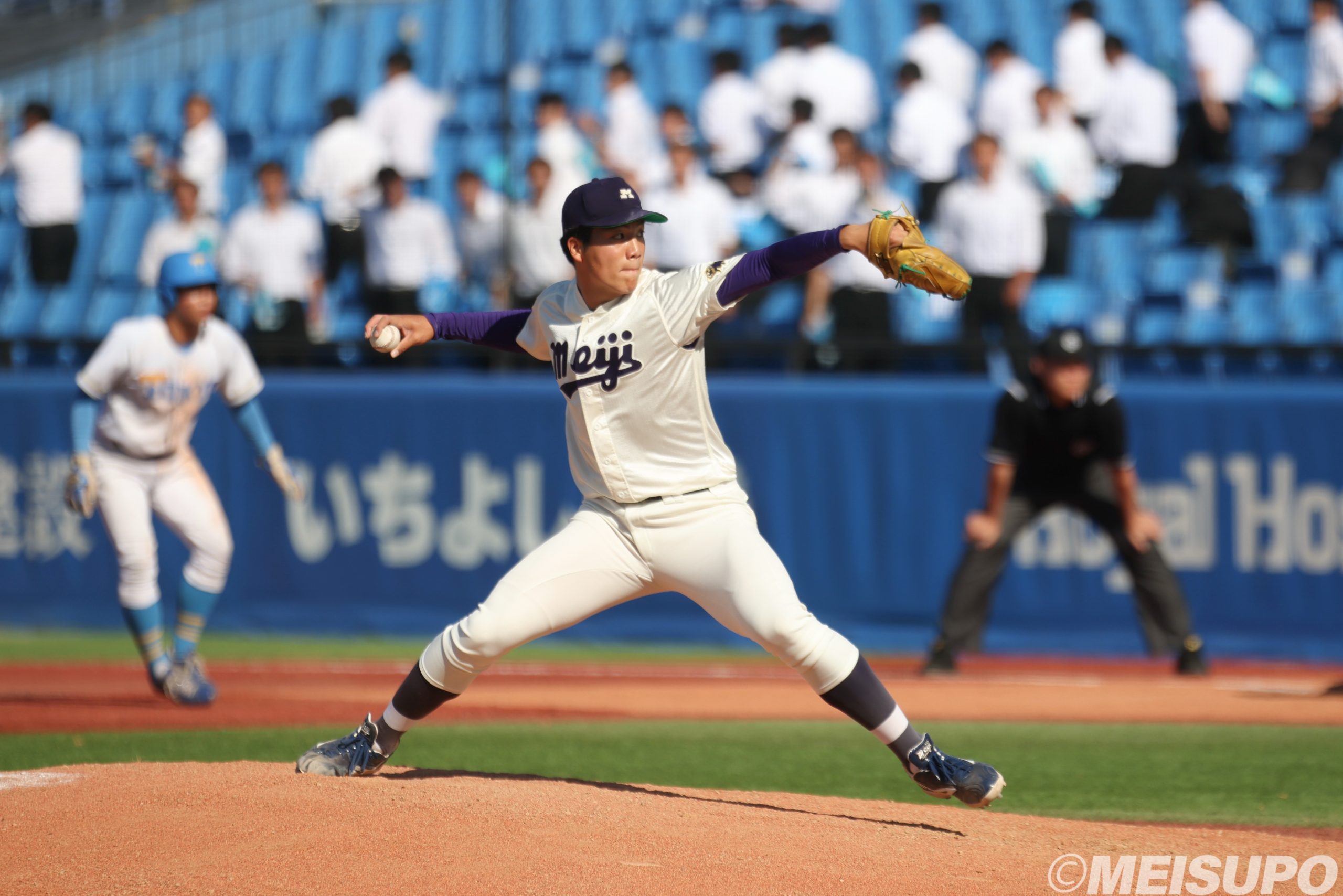 投打に力の差を見せつけた。先発を任されたのは、今秋でも好投を見せた期待のルーキー・村田。初回は走者を背負いながらも、力強い直球で相手打線をねじ伏せ、上々の立ち上がりを見せる。一方、相手先発・武冨(法大)も走者を背負いながらも巧みな投球で明大打線を翻弄(ほんろう)。試合序盤は両者譲らぬ展開が続く。