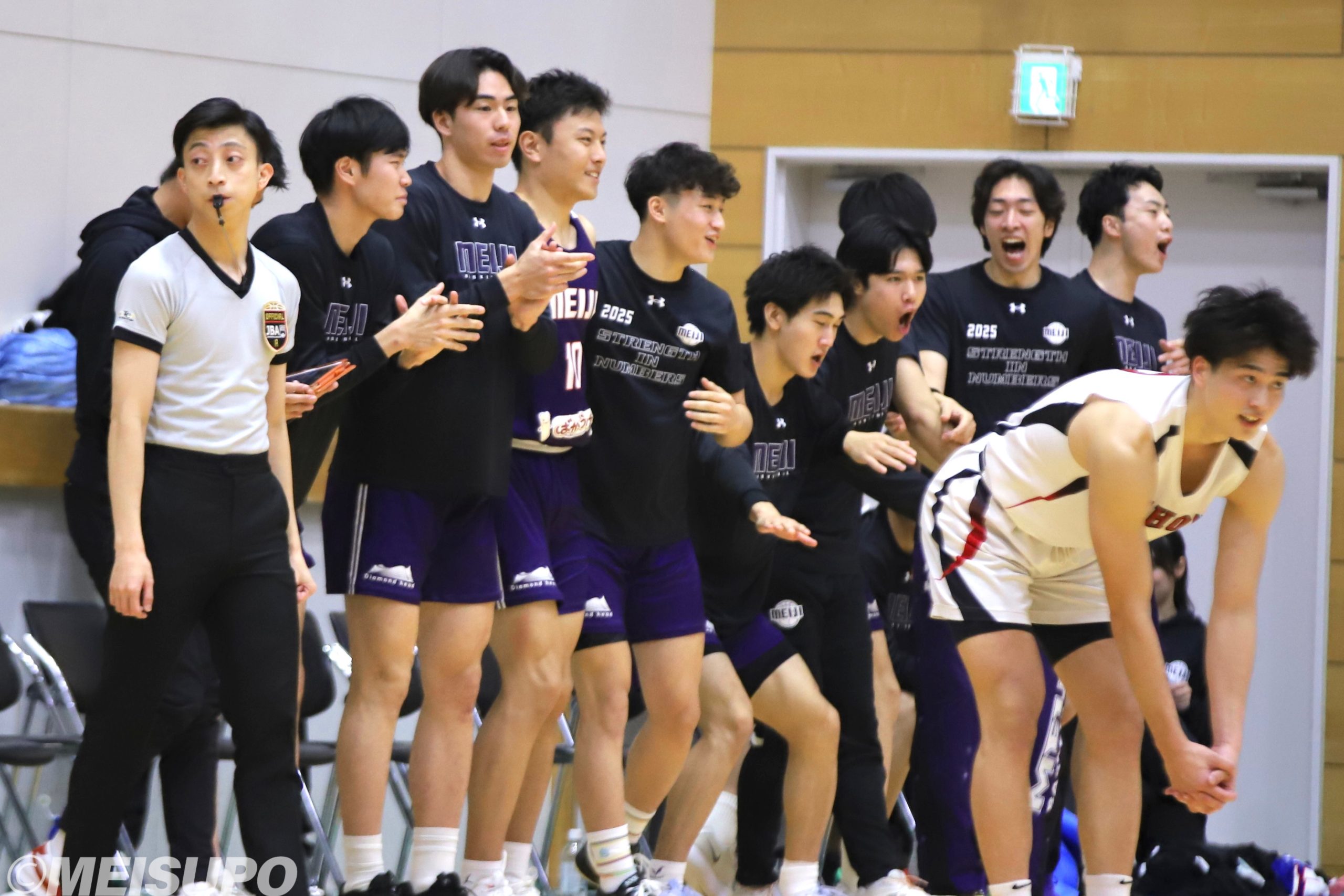 スターターはPG平松克樹(情コミ2=福岡大大濠)、SF田邉太一(情コミ3=福岡大大濠)、SG越田大翔(政経2=仙台大明成)、PF伊藤治輝(政経2=桐光学園)、PF小河原幹太(営2=八千代松陰)。