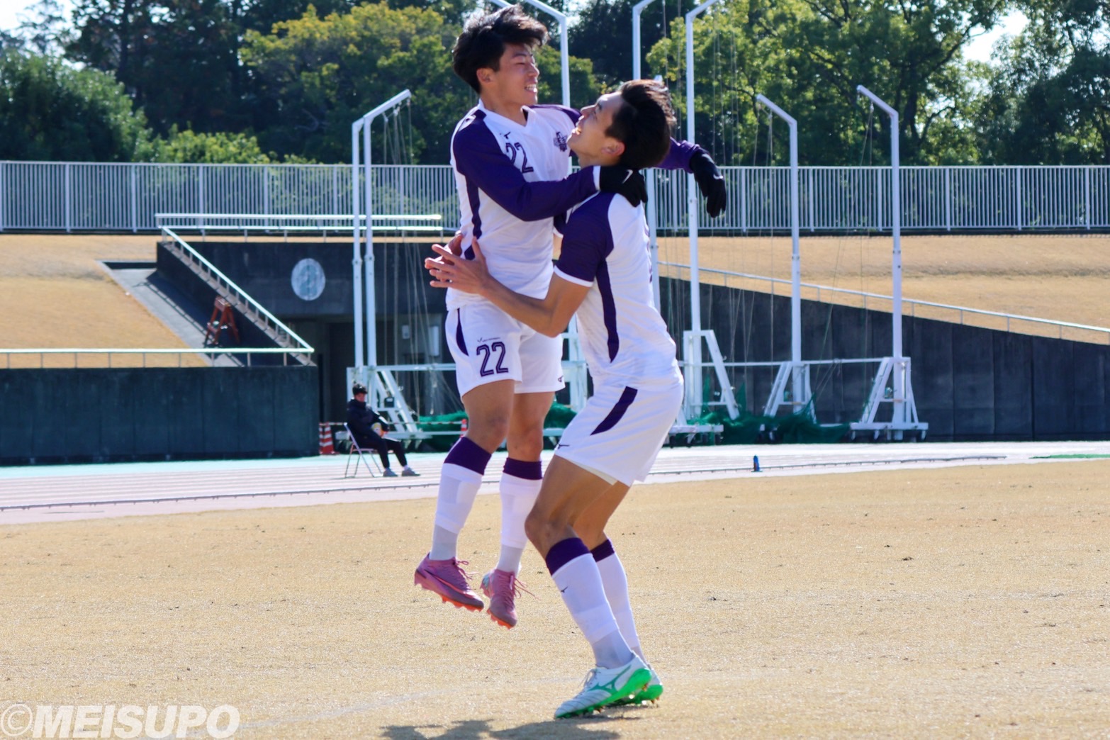 4年ぶりの天皇杯出場に向け絶対に負けられないこの試合。攻撃陣では2人の3年生アタッカーが躍動した。まずは18分、相手CBとWBの間へと走り込んだ熊取谷へ阿部からパスが渡る。最後はGKをかわし落ち着いてゴールへと流し込んだ。「相手が5―4―1のようなフォーメーションで守ってくる中で、ワイドの選手とCBの間のスペースをどれだけ突けるかと話していて、熊取谷がいいランニングから決めてくれた」(栗田大輔監督)。狙い通りの形から先制点を奪った。