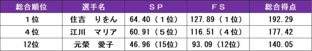 「最近にしてはよく出ているかなと思うので、もっと(点数を)出せるように。もっと(難易度の高い)ジャンプを入れないと(点数が)伸びないと思うので、頑張りたいと思います」