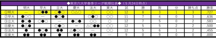 最終カード初戦を6-0で完勝した明大。明日勝てば4季ぶりのリーグ優勝が決まるだけに今日の試合をきっかけに勢いに乗りたいところ。2年間溜まった悔しさを晴らせるか。