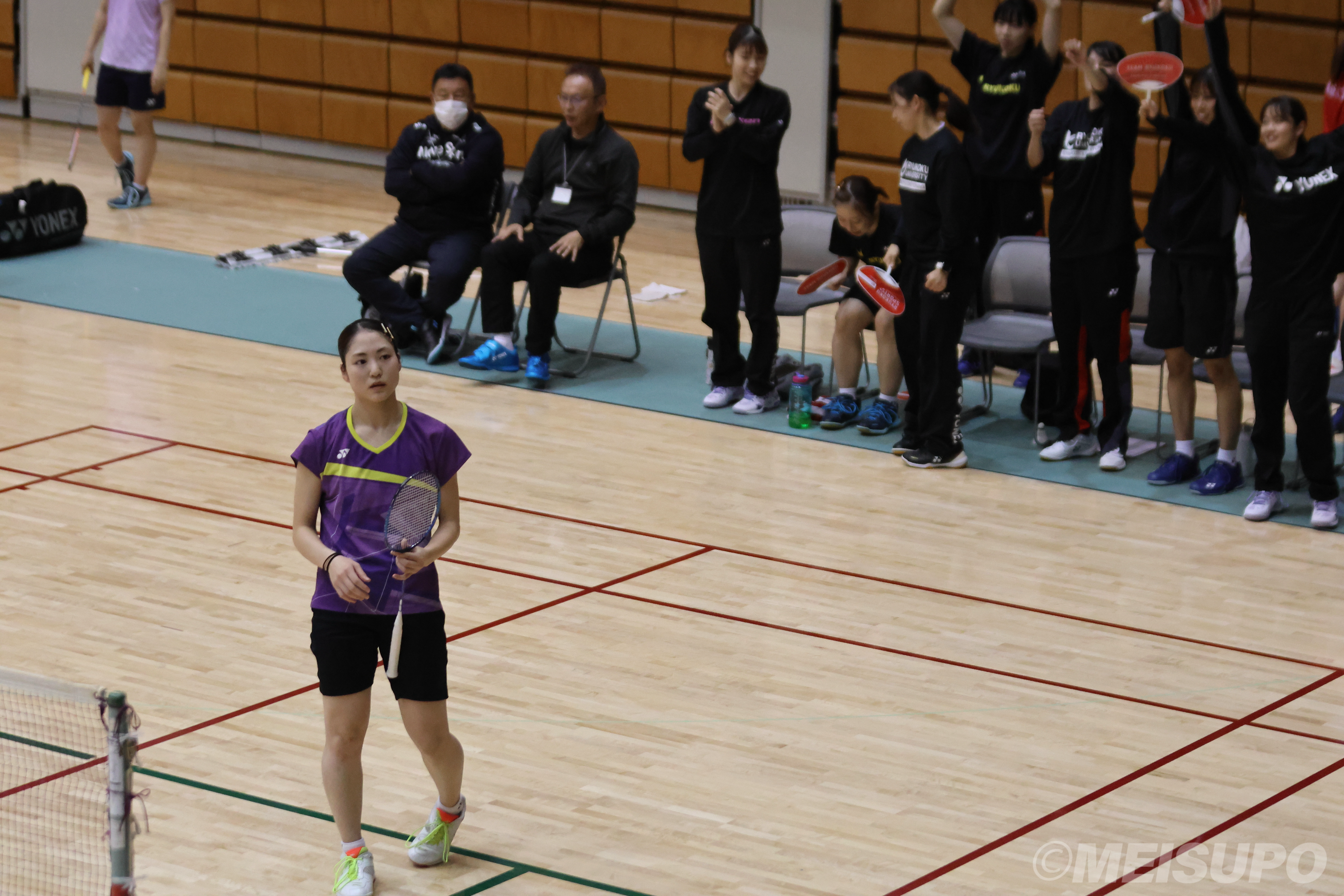 第1ダブルスの小原陽夏(農4=酪農学園大付とわの森三愛)・亀井菜杏(農3=聖ウルスラ学院英智)組はファイナルで敗北。続く第2ダブルスの杉山凛(文4=西武台千葉)・石川乃乃葉(文1=青森山田)組も完敗しゲーム数は同点となった。最終戦の第3シングルスは田代葵楓(商4=埼玉栄)。2ゲームを大差で勝利し、明大は男女ともに4連勝。優勝に大手をかけた明大の快進は止まらない。