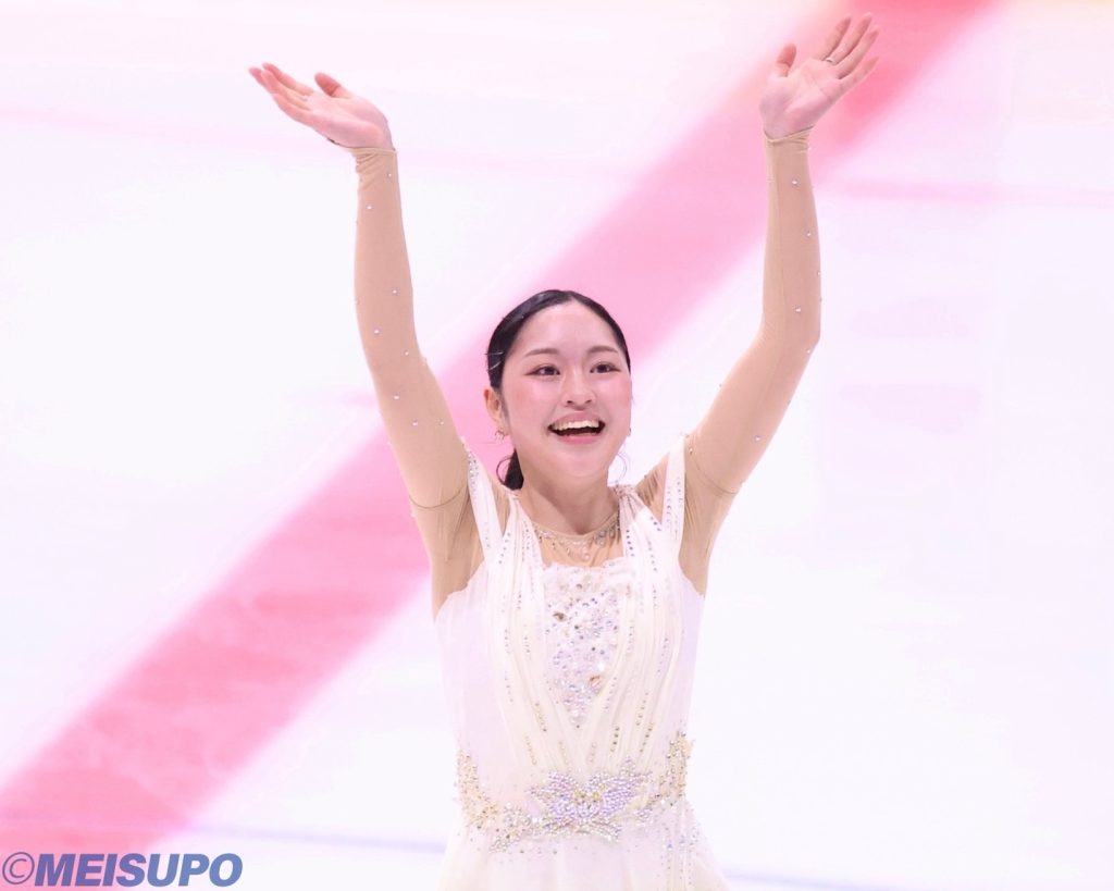 観客の大歓声に迎えられ登場した住吉。薄紫色を基調とした上品な衣装を身に纏い、家族への「感謝」をテーマとしたプログラム『Alba Lullaby』に挑んだ。冒頭のダブルアクセルを鮮やかに決めると、続く3回転ルッツ、3回転トーループのコンビネーションではGOE(出来栄え点)1.18を獲得。難度の高いジャンプを確実に決め、演技の流れを引き寄せた。最後の3回転フリップでは体勢を崩す場面もあったが、粘り強く堪え大きな失点は免れた。「このプログラムでは、自分自身や家族への感謝を常に意識しています。見てくださる方々にも、大切な人を思い出してもらえるような演技になっていたら嬉しいです」。繊細なピアノ曲に合わせた豊かな表情と手先まで気を配った美しい一つ一つの動きそれぞれが試合を重ねるごとに完成度が増している。さらに、ロンバルディア杯で課題となったスピンは、この日はすべてレベル4を獲得。中3日というタイトな日程の中でも確かな修正力を発揮した。今大会は全日本選手権、さらにその先、夢のオリンピックの出場へとつながる第一歩。FSでも住吉の勝負強さに期待がかかる。