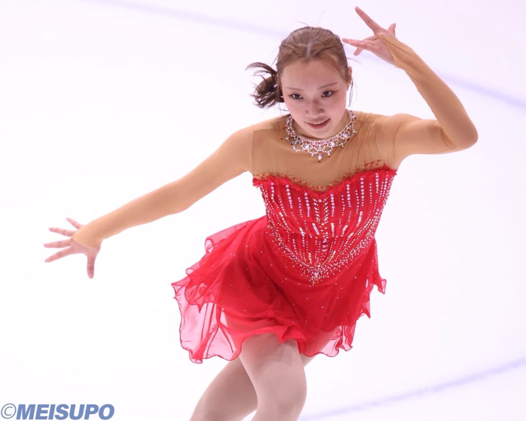 1番滑走という重圧がかかる中で演技に臨んだ奥野。「朝だから体が動かなかったとかそういうわけではなく、ただ単に本当にかみ合わなかったというのが正しいかなと思う」。冒頭に跳んだ2回転アクセルが1回転になると、続く3回転ルッツも着氷が乱れてしまう。さらに3本目の3回転フリップも着氷で膝をついてしまい、コンビネーションをつけることができなかった。「本当に何もわからない。練習でもとても悪いというわけではなかったので落ち着いてやれば跳べるかなと思ったが、まさか1本目のアクセルで抜けてしまうと思わなかった」と演技後には涙を流した。しかし演技構成点では7位に食い込むなど、奥野らしい伸びやかなスケーティングと高い表現力をしっかりと見せた。