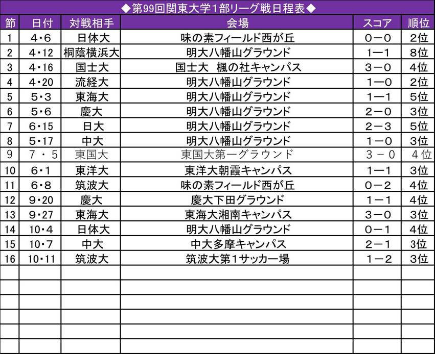 「絶対負けられないという中で、この結果というのは本当に重く受け止めなければいけない。次節からも全勝を目指さないと優勝は難しい」(稲垣)。首位との勝ち点の差は13。逆転優勝に向けて紫紺の戦士たちは走り続ける。