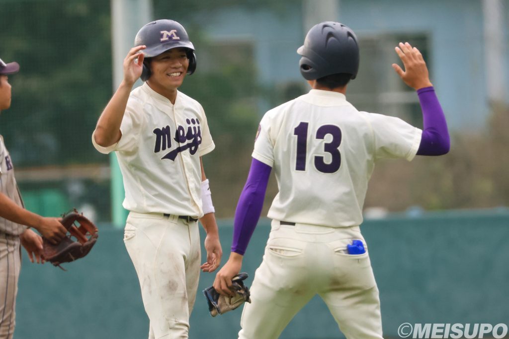 2点を追う展開となった5回表1死から2者連続出塁で一、二塁とすると、亘の遊ゴロ処理で相手二塁手が悪送球。その間に二塁走者・山田聖和主将(農4=東海大菅生)が本塁に生還し1点を返す。その後は前の回2死から登板した雨宮佑貴投手(総合2=甲府西)が6回裏まで無失点の投球でリズムをつくった。