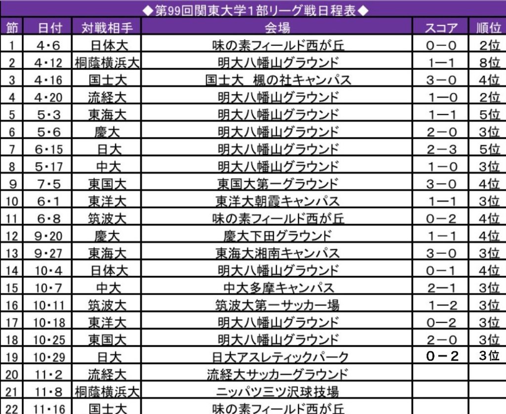 直近の試合ではなかなか勝ちを挙げられていない明大。リーグ戦も残すは3節となった。優勝を逃すことが決まった今、できる最大限のプレーをすることしか道は残されていない。