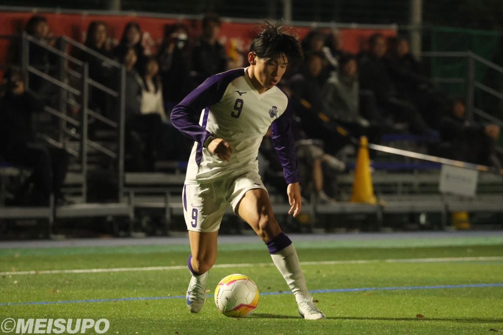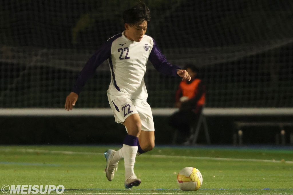 リーグ戦を通して前半での得点力が課題の明大。先制して勢いをつけたいところだったが、相手の強固なディフェンスに阻まれる。0-0でゲームが進む中、前半終了直前の45分、ゲームが動いた。「相手がセットプレーやCK(コーナーキック)を得意としているのは分かっていたが、結局自分たちの容易なミスから相手の得意な形に持っていってしまった」(三品)と右サイドのCKに持ちこまれ失点を許す。