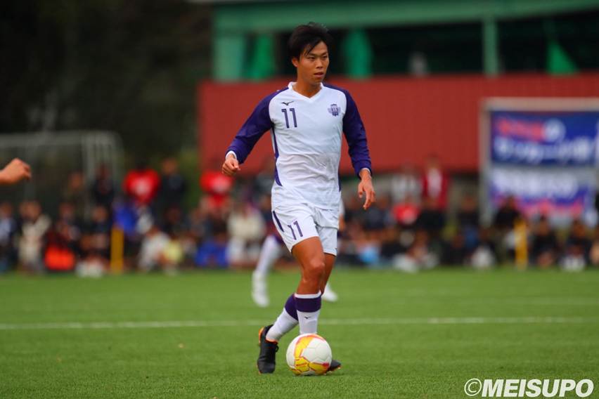 リーグ戦を通じて前半の得点力が課題の明大であったが今節は得点力不足を感じさせない試合運びを前半から見せる。7分、クロスからのこぼれ球をペナルティーエリア内でつなぐと最後は林がシュートをゴール突き刺し先制。続く20分には林が上げたクロスを川合がヘディングでボールをつなぎ、久保原がヘディングシュートを放つがボールはクロスバーに阻まれるも、そこに走り込んでいた小泉が押し込み追加点を奪う。「気持ちで押し込むっていうところで、こぼれ球に反応してやろうと思っていたので、そのこぼれ球に反応して押し込めてよかったなと思っている」(小泉)。その後も立て続けに攻める明大は31分に小泉がグランダーのクロスを中に蹴り込み久保原がスルーをしたところを待っていた大野が足を振り抜き3点目をもぎ取り前半を終える。「去年からも試合に絡んでいた中で、なかなか数字で結果を残せなかったので、そういった意味でも点を取って結果を出せたことは自分にとってもうれしい」(大野)。