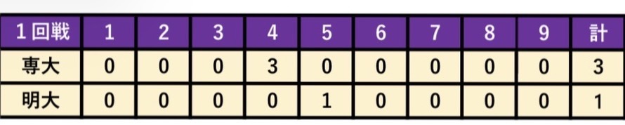関東の学生・社会人準硬式野球の王座を決める大会の初戦が行われた。優勝を目指す明大の初戦の相手は東都大学1部リーグ優勝校の専大。専大を追いかける状況で打線がつながらず苦戦する中、9回に同点の好機が訪れるも後一打が出ず試合終了。惜しくも勝利を逃した。