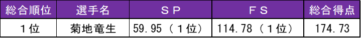 菊地はSPで60点以上を出すことを目標に演技に臨んだ。自身が「代名詞」と語る冒頭のトリプルアクセルを加点のつく出来で着氷。続く3回転ルッツ+2回転トーループのコンビネーションジャンプも降りた。それでも「全部耐えている感じの演技になってしまった。ステップは頑張れたと思うが、エレメンツのジャンプやスピンの部分でもう少しできるところはあった」。目標の点数には0.05点及ばず、悔しさをあらわにしたがシーズンベストの得点で首位発進となり翌日のFSにつなげた。