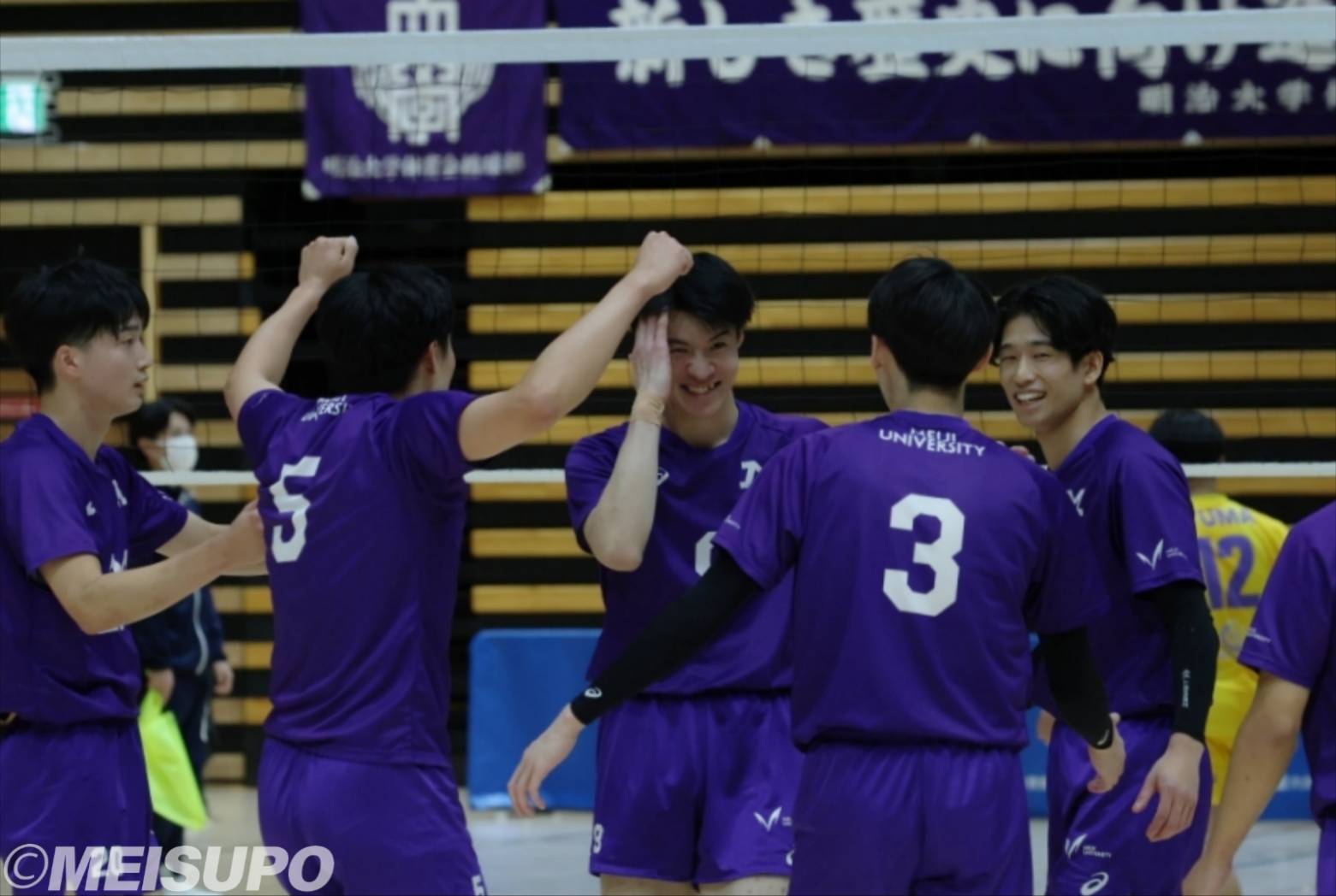 S近藤蘭丸主将(文4=東福岡)、OH荒井貴穂(法2=駿台学園)、MB渡邉健(政経3=日本航空)、OP黒澤孝太(政経4=明大中野)、OH佐々木駿(商4=土浦日大)、MB成村航希(政経2=東海大相模)、Li磯脇侑真(政経3=東福岡)