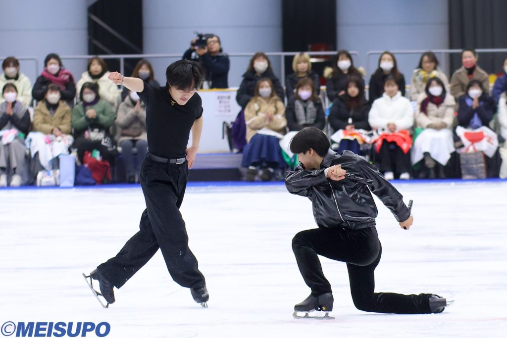 2月に行われるミラノ・コルティナ五輪への出場が決まった三浦は「あけましておめでとうございます。2026年の幕開けは、名古屋フィギュアスケートフェスティバルになります。精いっぱいパフォーマンスしたいと思いますので、ぜひ一緒に盛り上がってください」とコメントが読み上げられた。披露したのはNumber_iの『INZM』。ジャンプでは冒頭で3回転ループを着氷し、その後は持ち味の疾走感あふれる演技で盛り上げた。アンコールに対しては「あと10秒(待って)」と会場から笑いを誘う場面もあったが、今シーズン前半で使用したFS(フリースケーティング)『ラストサムライ』のショートバージョンを披露。演技終盤には中村俊介(木下アカデミー)と共演しフィニッシュポーズを決めた。さらに三浦はフィナーレの登場でトリプルアクセル+3回転サルコーのコンビネーションジャンプを成功させた。