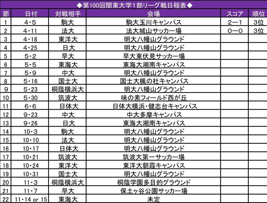 次戦はホーム開幕戦で東洋大を迎える。「ファンや保護者の方などたくさん来ると思うので、チーム一丸となって絶対勝ちたい」(稲垣)。八幡山で勝利をつかみ、弾みをつけられるか。