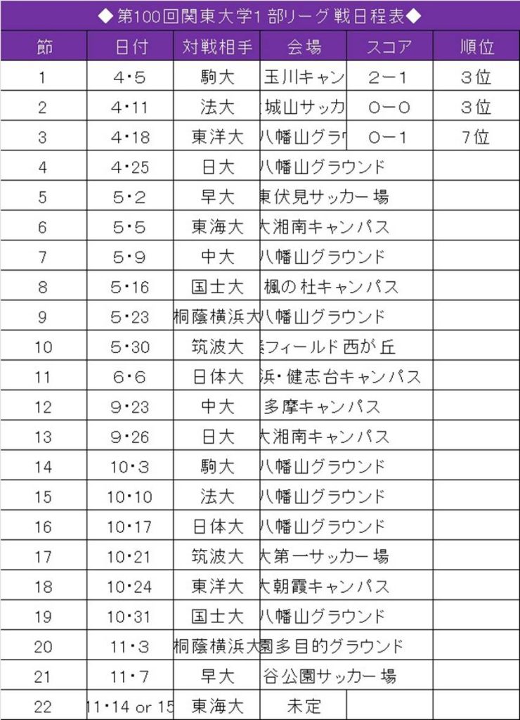 前節スコアレスドローに終わった明大はホームに東洋大を迎えての一戦となった。明大は柴田がリーグ戦初スタメンに抜てき。「失うものはないと思っていましたし、自分が1列前で使われた意味も自分の中では理解していた」(柴田)。開始直後に宇水が負傷交代し石井を緊急投入。序盤から攻守が目まぐるしく入れ替わる展開。22分には相手CK(コーナーキック)のこぼれ球をダイレクトでシュートされるも濱﨑がしっかりとセーブ。33分にはFK(フリーキック)の流れからボールをつなぎ、今シーズンからスタメンの座をつかみつつある山端がシュートを放つも相手ブロックに阻まれ前半を0―0で折り返す。「ワンチャンスを決めるところであったり、もっとゴールに全員が向かっていくところが足りなかった」(柴田)。