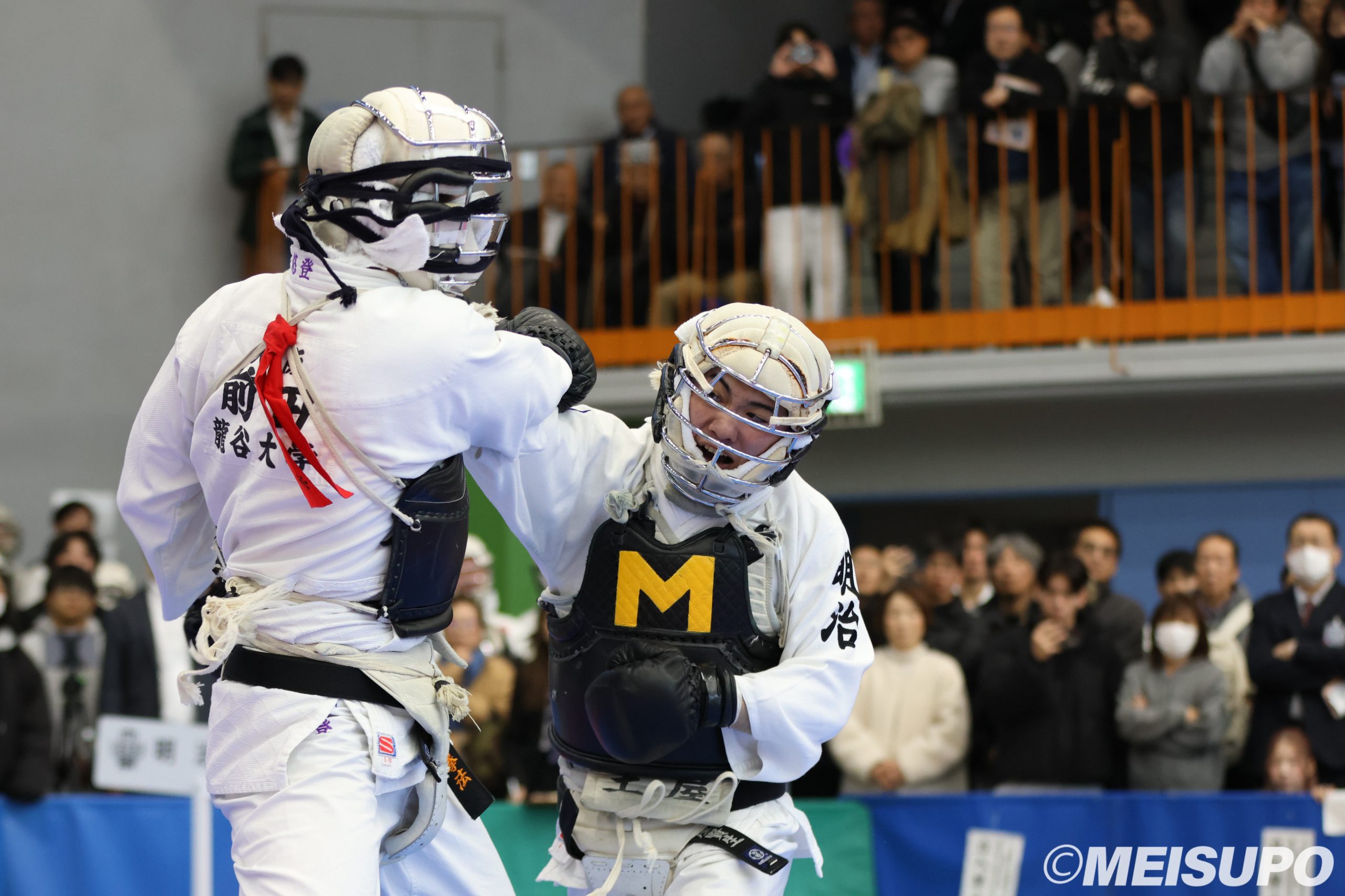 自分の成長を確認できた。大貫は2回戦まで面突きで2本を取り順調に勝ち進んだ。だが「次の相手を意識しすぎて中途半端になった」と3回戦では激しい突きの打ち合いに敗れた。一方、片山は初戦は先に1本を奪われる苦しい展開。それでも粘りを見せ逆転勝ちを収めた。次の昨年3位の前川(洪遊会本部)との試合は「やりたいことが全然できなかった」と0―2の完封負け。しかし「どれだけ成長したかを確認した」(大貫)、「どんな相手でも向かっていけるようになった」(片山)と2人は大きな収穫もあった。