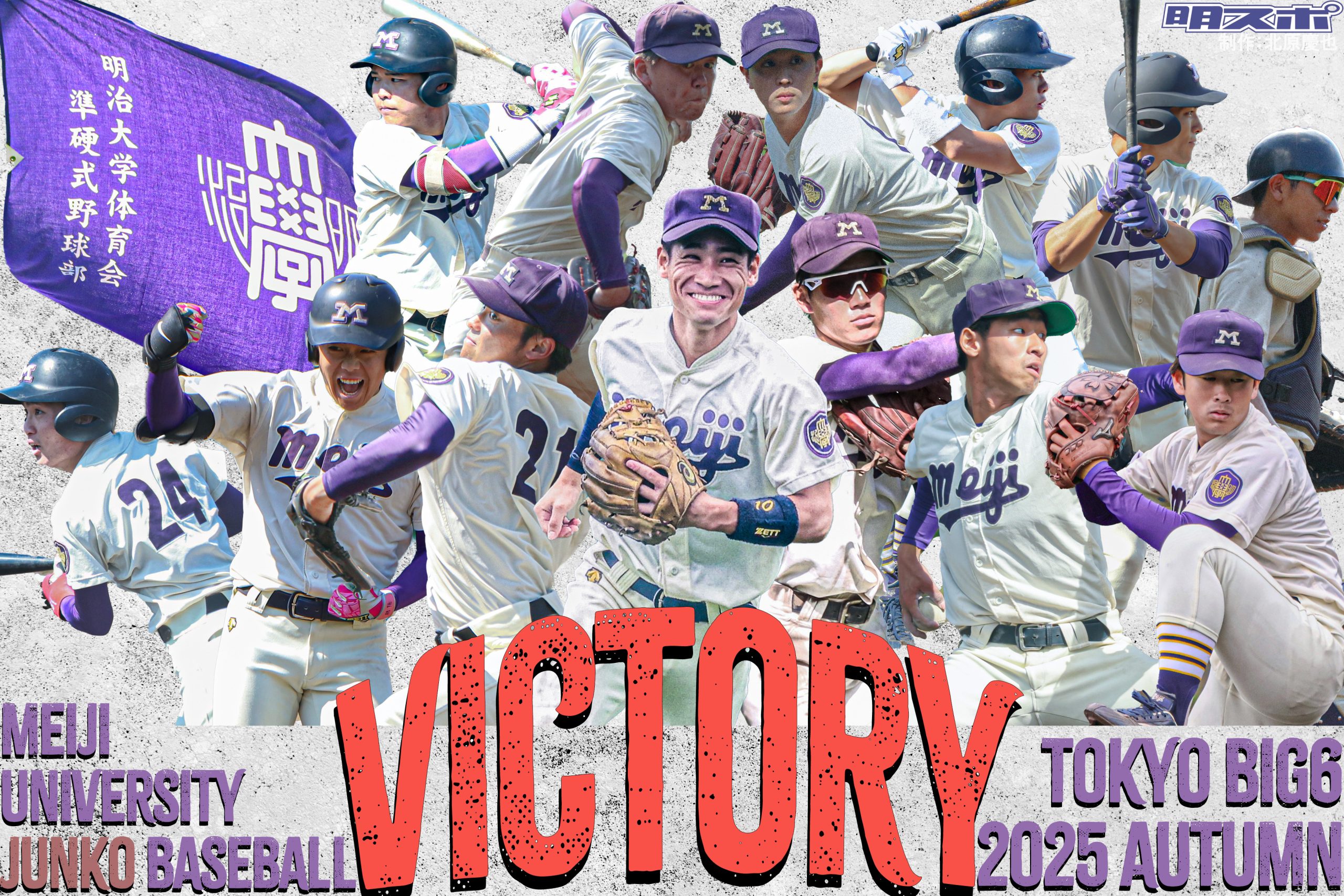 4年生の幕を引くにふさわしい、激しい試合展開だった。1回裏でいきなり先制点を許してしまった明大。しかし4回表、2死一塁の場面で辻義大主将(政経4=長崎商)が本塁打を放ち、逆転に成功した。「皆の声援が球を運んでくれた」(辻)。この回に1点返され同点になるも流れをつかみ、続く5回表で兼村京佑(法4=札幌第一)の左適時打などで一気に4点を獲得。しかし慶大も負けじと裏で4点を返し、この回は両者一歩も譲らない点取り合戦となった。その後お互いに1点ずつ追加するも、時間制限により8回表で試合終了。7-7の引き分けに終わった。