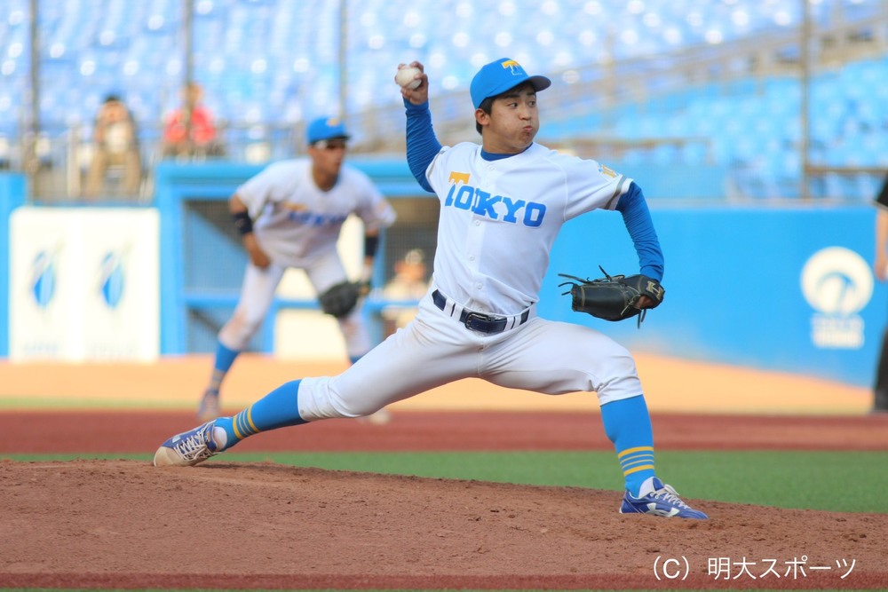 「個人的には前半で大量失点をしてしまった、ということはやはりチーム全体にスコア上もそうですし雰囲気的にもマイナスになったのでそこは反省しています。ただ明治戦の最初に坂口がいいピッチングをして、そこで少し雰囲気が変わったというかチーム全体もそうですし僕自身もまだまだやれるな、という勇気を持つことができました。そこからまた後半の戦い方も変わってきた感じです」