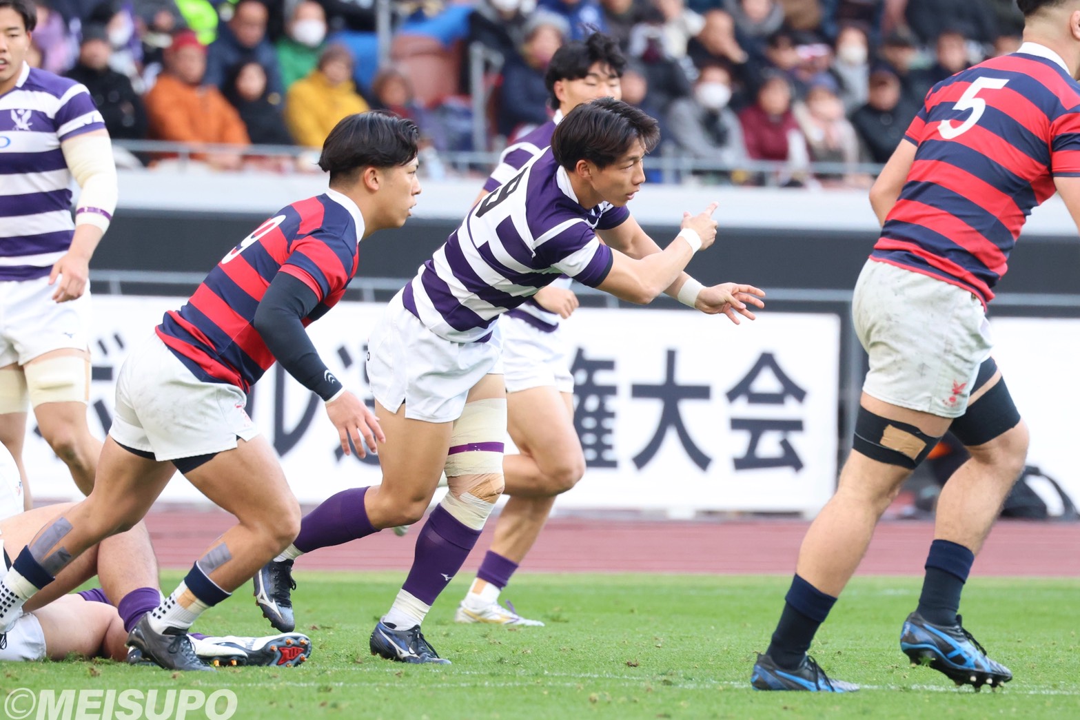 爽快なステップで一つ一つの刹那を走破する。スタンドオフ齊藤誉哉(文1=桐生一)は、春シーズンから紫紺に袖を通し、キック、パス、ランの三拍子がそろったプレーで存在感を発揮。いかなる局面でも物怖じしない積極性で、チームに新風を吹かせてみせる。