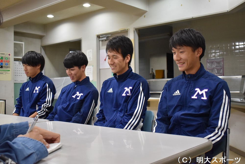 第3回は河村一輝(政経4=大垣日大)、小袖英人(政経3=八戸学院光星)、前田舜平(政経3=倉敷)、村上純大(政経3=専大松戸)ら4人の座談会をお届けします。(この取材は10月22日に行われたものです)