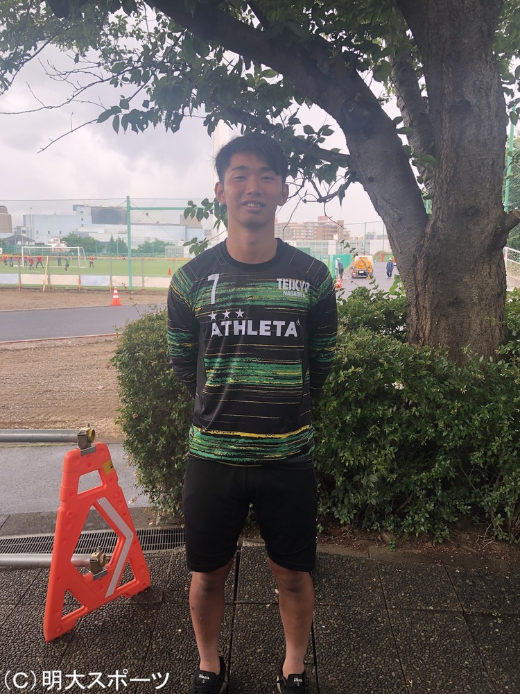 倉俣:サイドで1対1で対峙して勝負することが多いので、1対1で絶対に負けないということであったり、絶対に抜き切ってシュートやクロスまで繋げるということは明大でも大事にされていることなので、そこは意識しながらやっています。