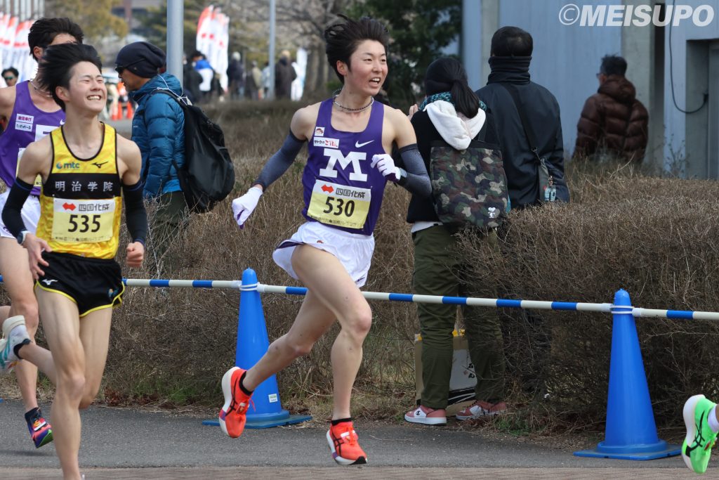 「今年に入ってから、故障というか足の痛みを抱えながらずっと練習していて、ここ2、3週間はあまり練習できていない状況でした。最低限丸亀は走りやすいので、62分半から63分ぐらいで走れたらいいかなという目標で走りました」
